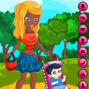 Dress up a young mum to make her the most beautiful one for a walk through the park with her son.